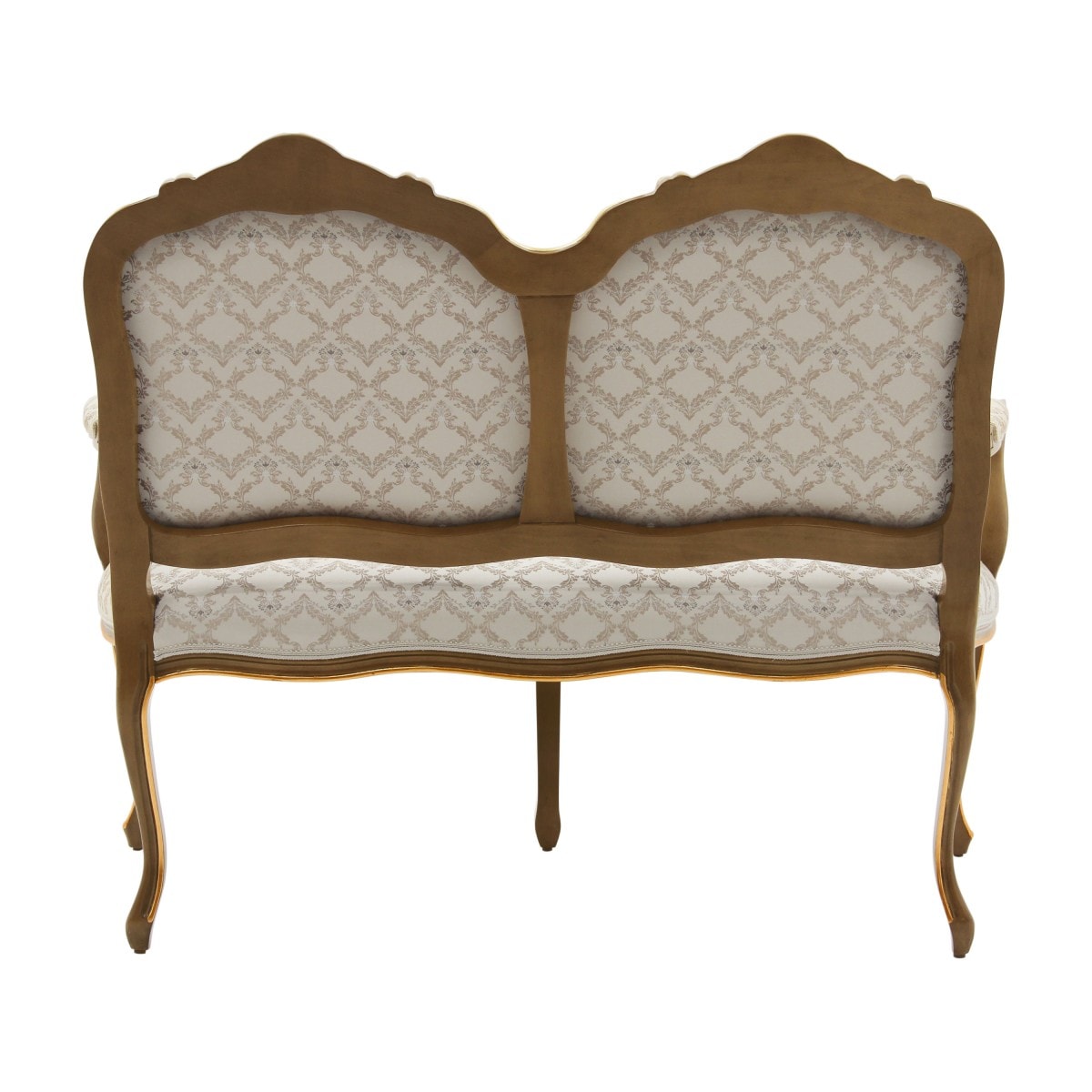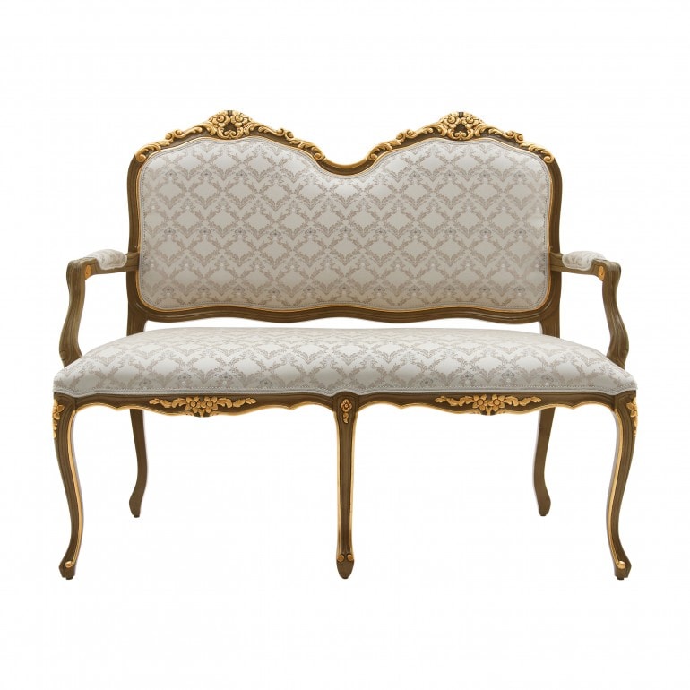 Classic design refined bench, wood structure, carvings.